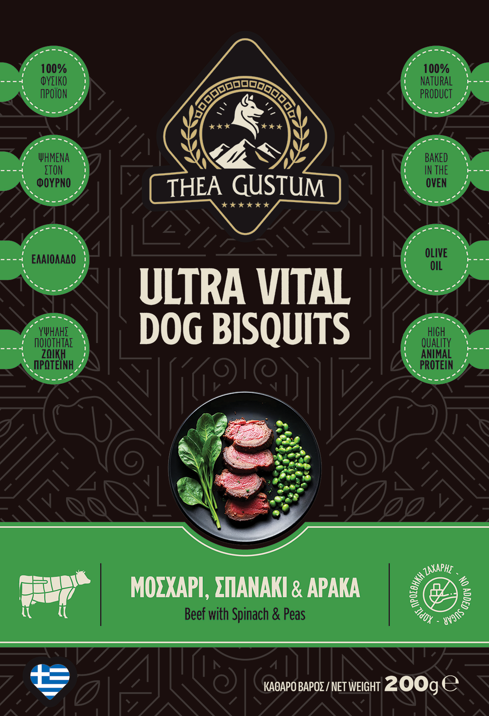 Μπισκότα Σκύλου Thea Gustum Bisquit Beef Spinach Pea